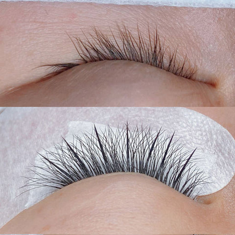 Spike usually looks the best when adding to a full volume set. Lash spikes add flare instantly and provide a bold and wispy look to lashes.